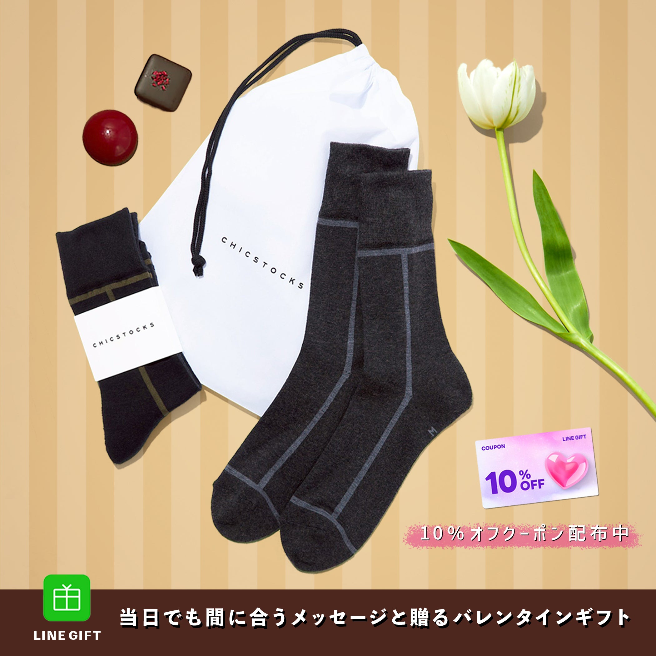 【バレンタイン】ラインソックス2足ギフトセットベストセラー