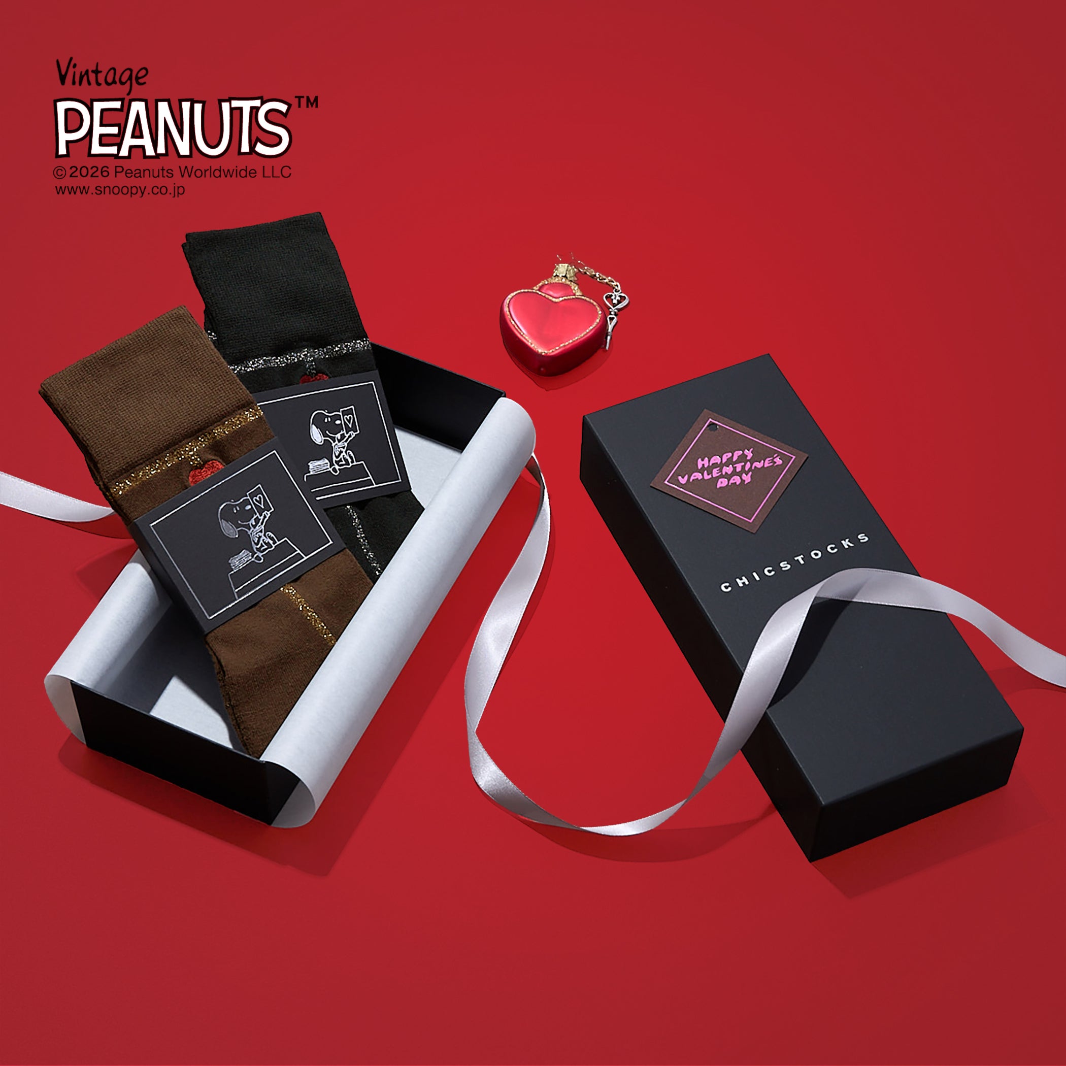 SNOOPY×CHICSTOCKSラメライン ハートバルーン2足ギフトセット