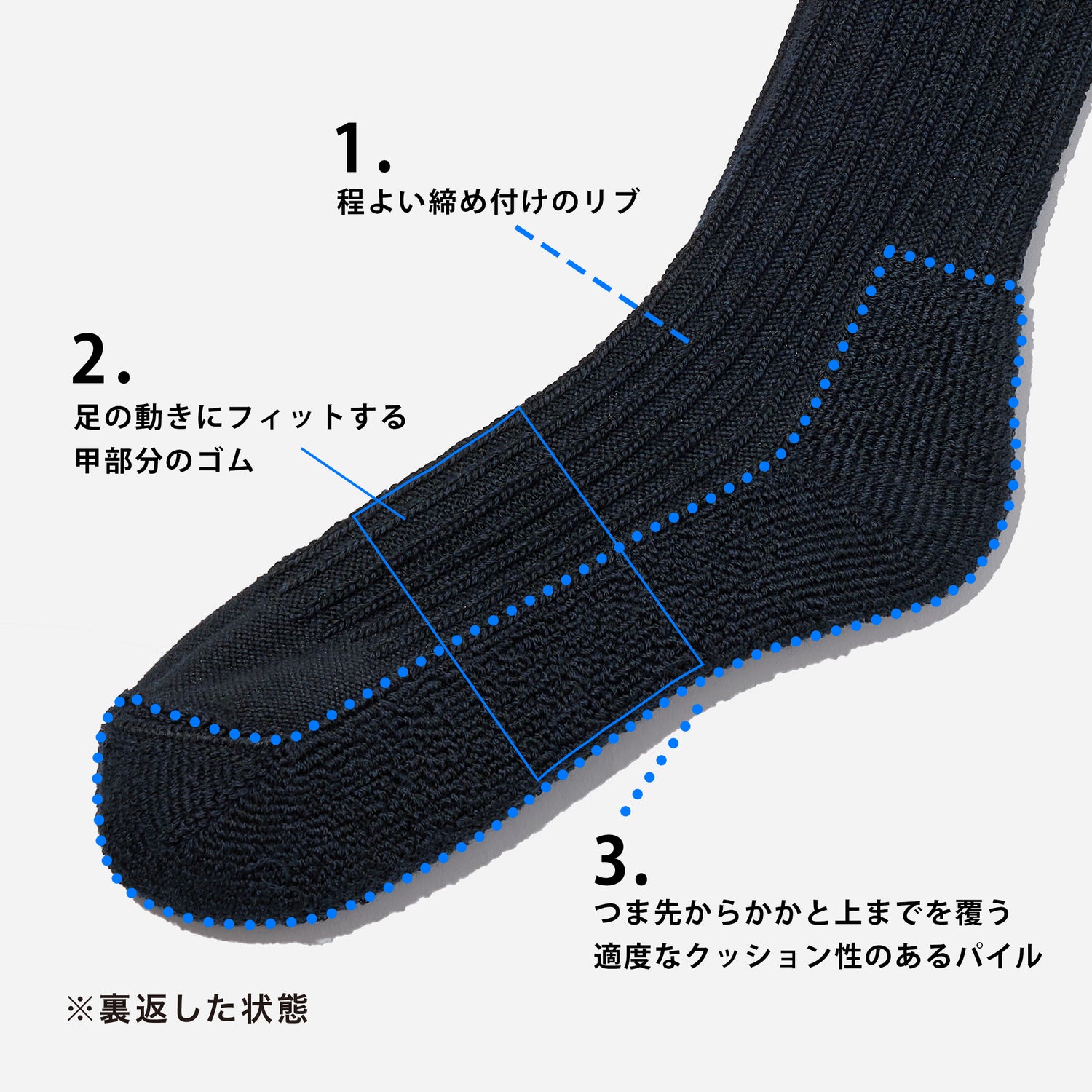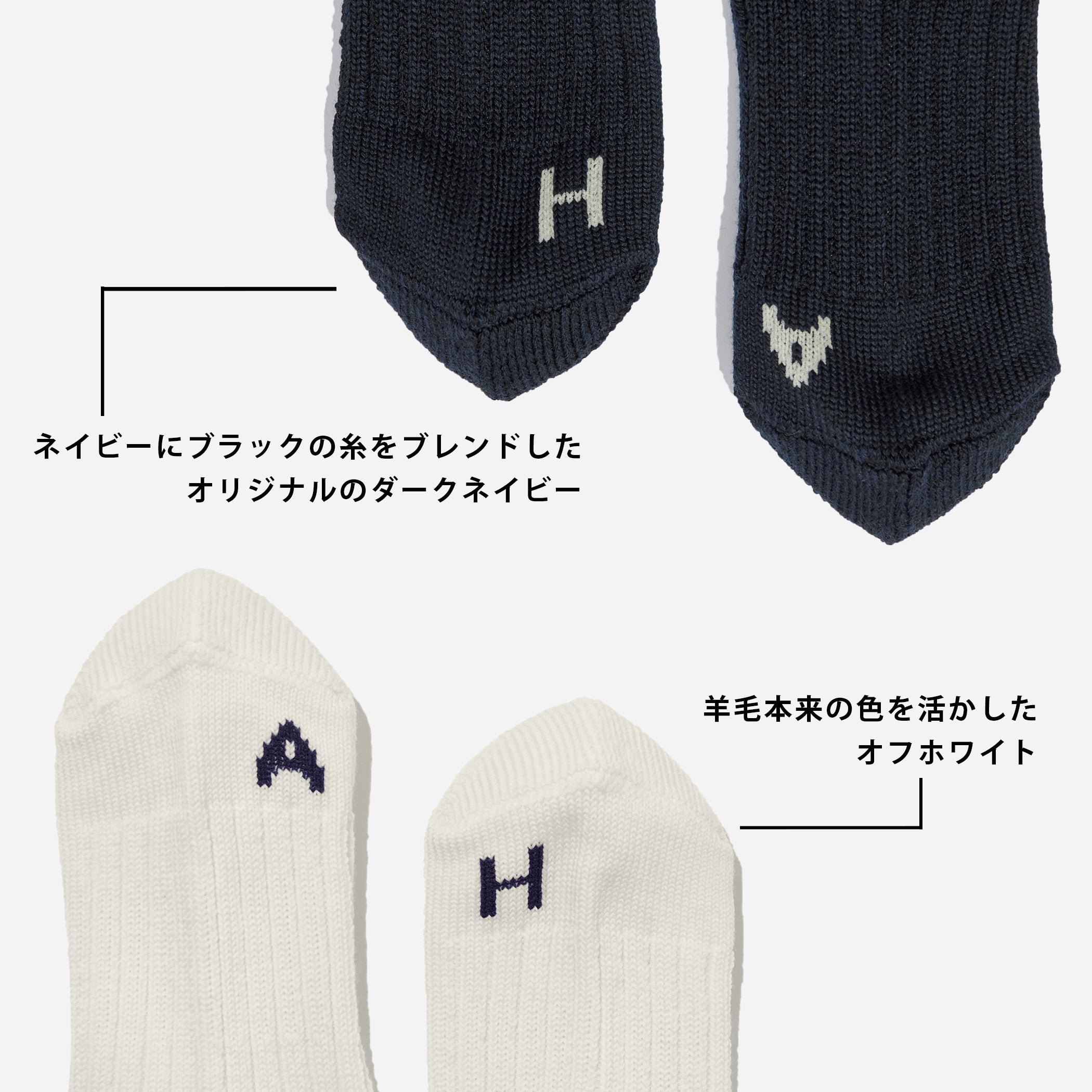 履き心地にもこだわり、見えない部分も工夫しました。ウールは繊細な素材ですが、ダメージを受けやすいつま先やかかとをパイルで覆うことで補強をしています。