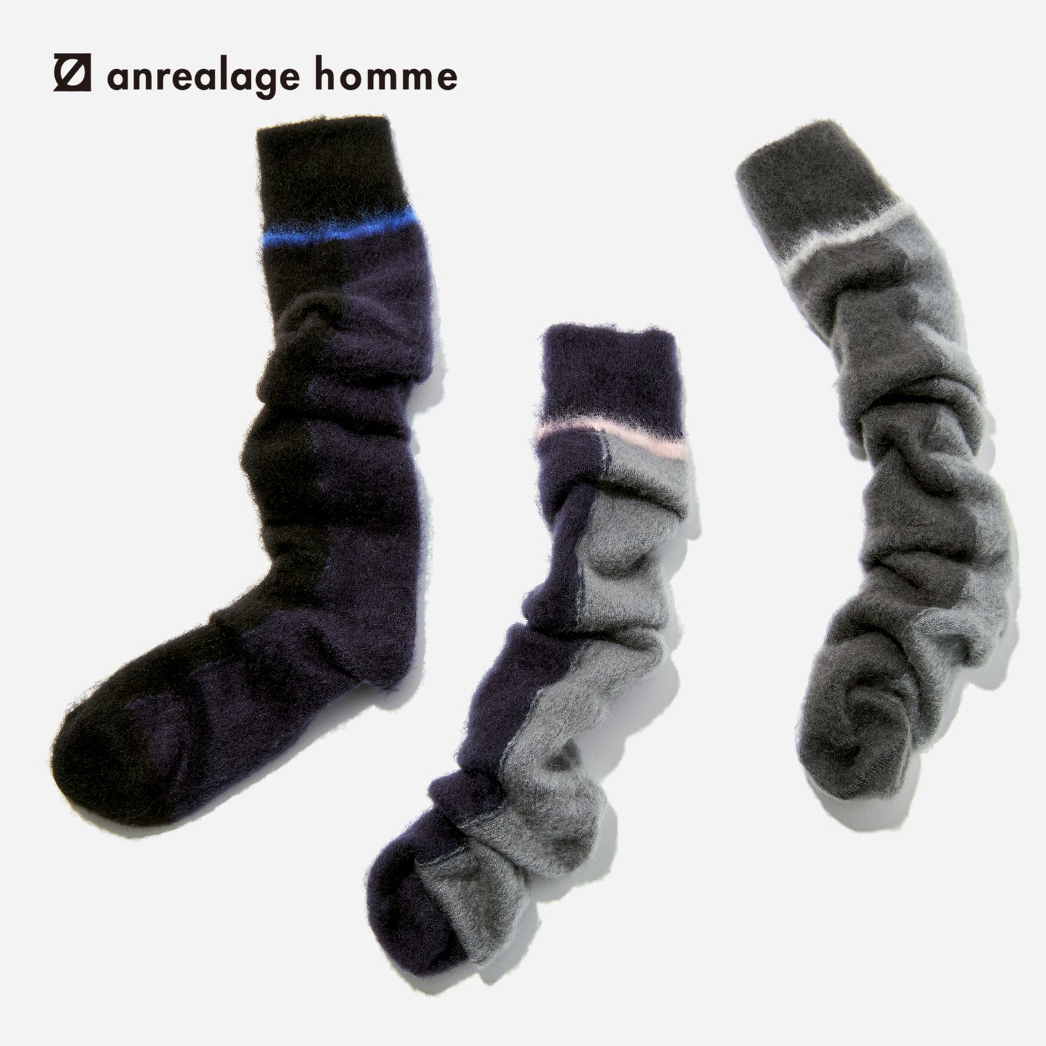 ソックス全体を起毛させ、モヘアのような質感を演出しました。