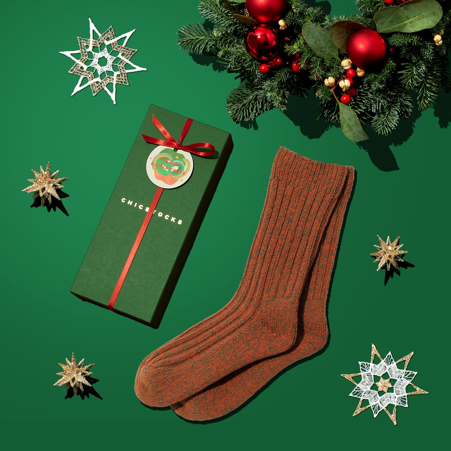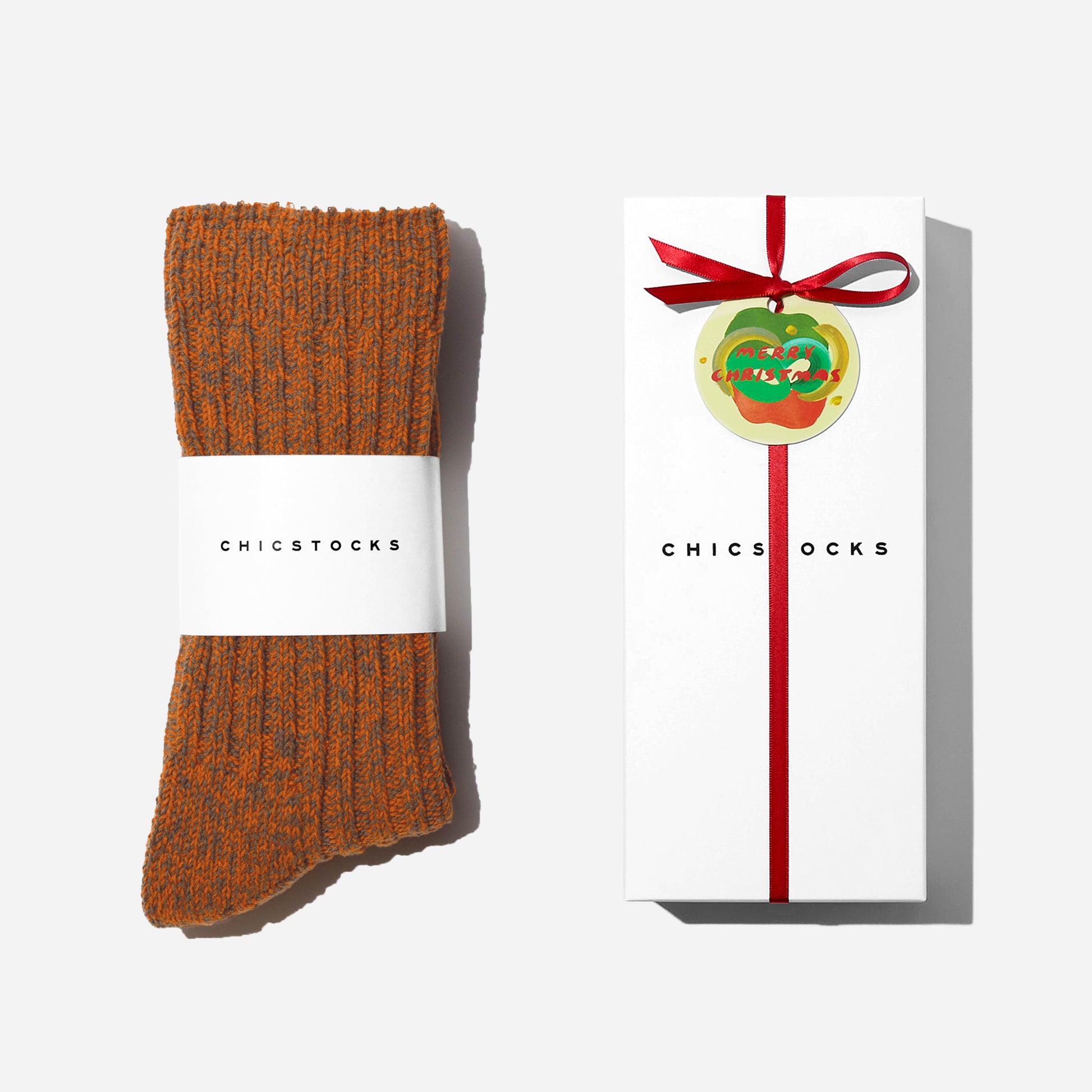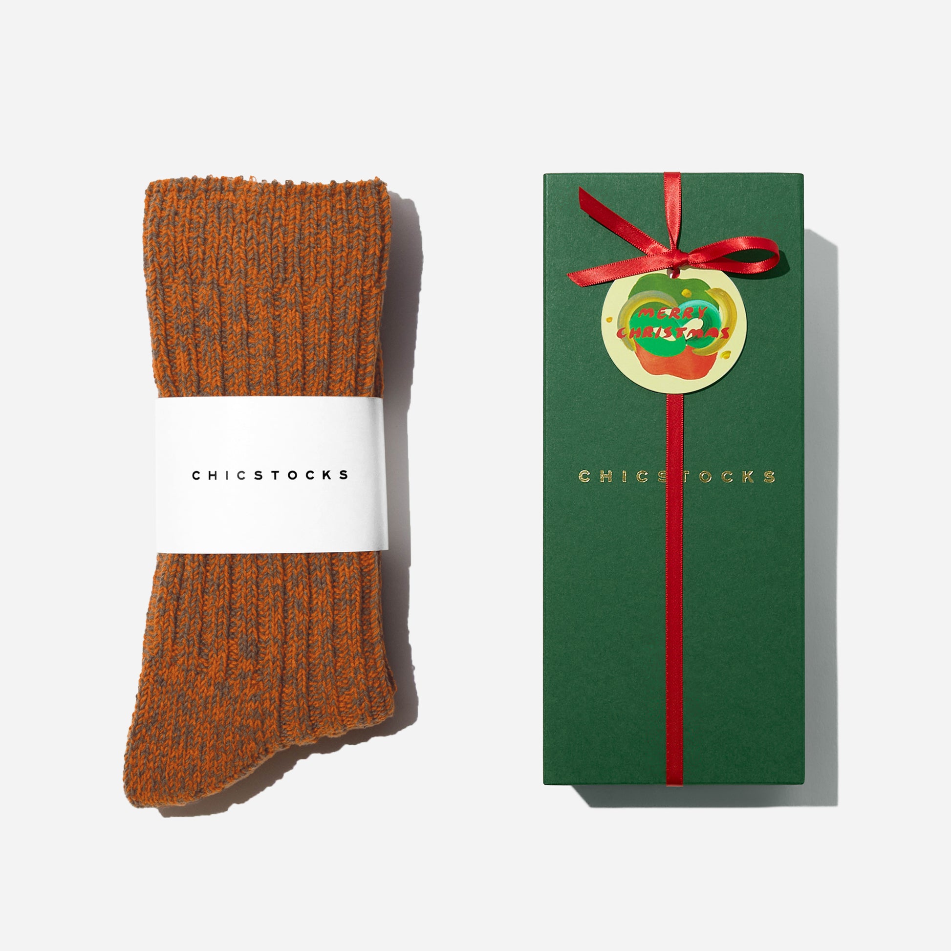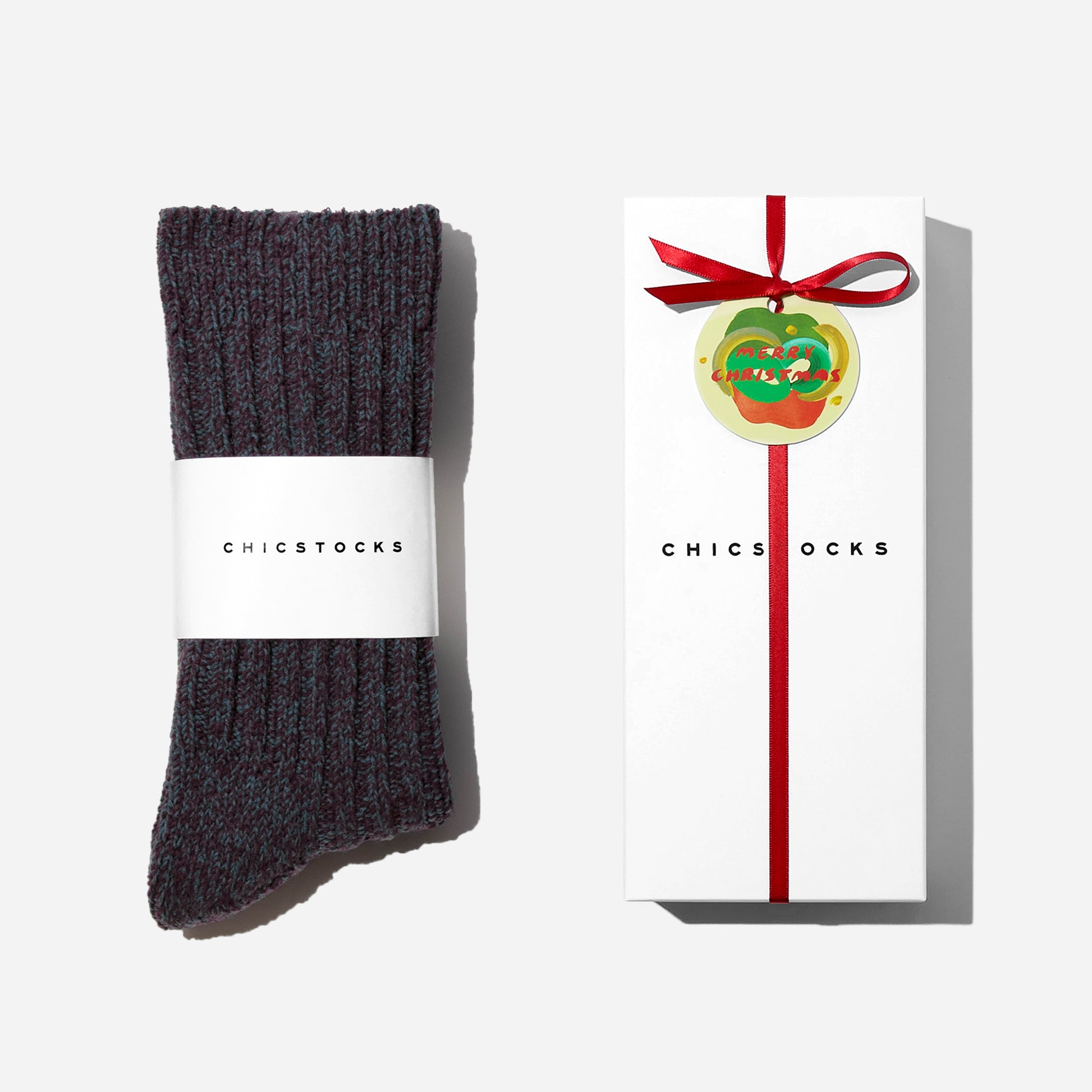 ギフトボックスは2色からお選びいただけます。靴下1足をラッピングした状態でお送りします。