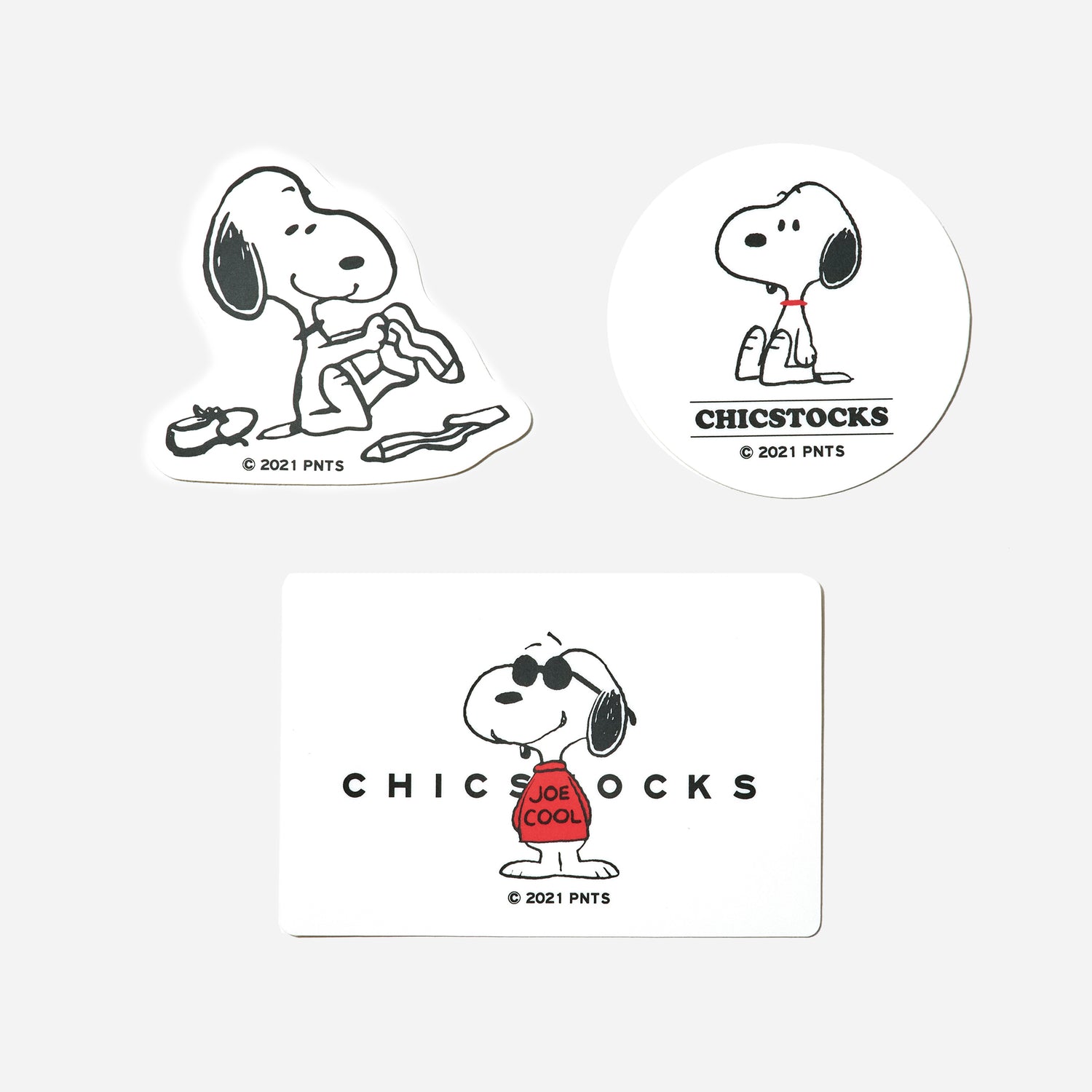 「ジョー・クール」、「コラボレーションソックスのスヌーピー」、ソックスのスリーブにもなっている、「ソックスを履くスヌーピー」、がモチーフになっています。