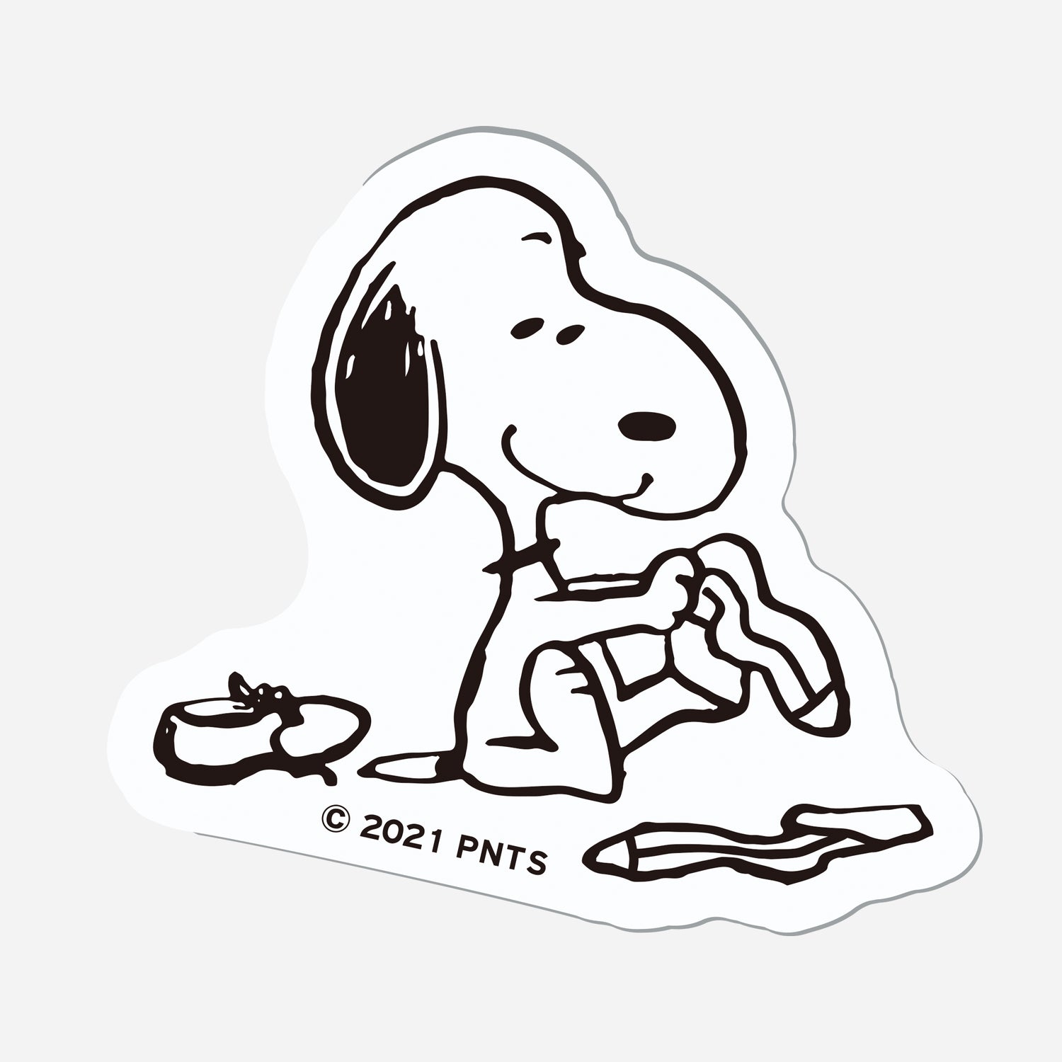 ピーナッツの仲間たちのキャラクターの名前と初登場日を印し、キャラクターごとに台紙から剥がせる仕様になっているステッカーと、1950年10月4日に掲載されたスヌーピーの初登場シーンをモチーフにしたステッカーをセットにしています。
